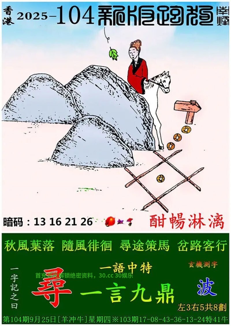 107期:助理玄机诗/简单好下注/台湾玄机诗/港台澳七肖/必中人物