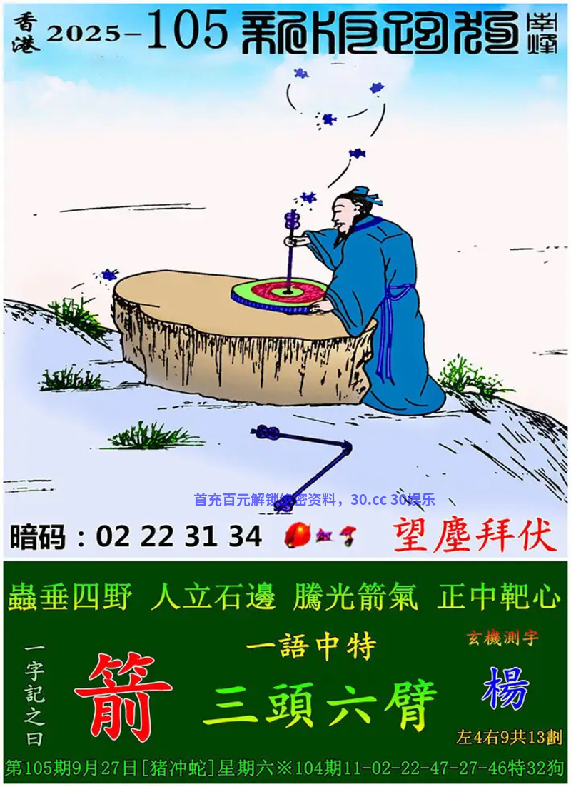 107期:金牌谜语/八百发财诗/彩坛先锋诗/黄大仙射箭/八百天机诗