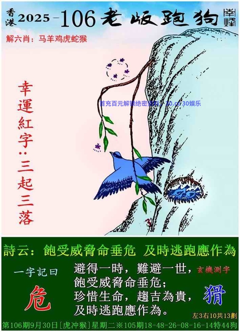 107期:正版鬼谷诗/一字记之曰/五字真言/港彩另版挂牌/波色玄机